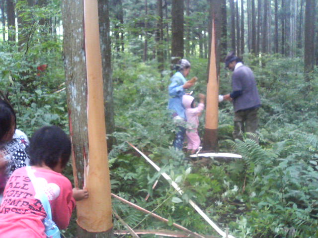 皮むき間伐の愛称で、重機やチェーンソーを使わずに、